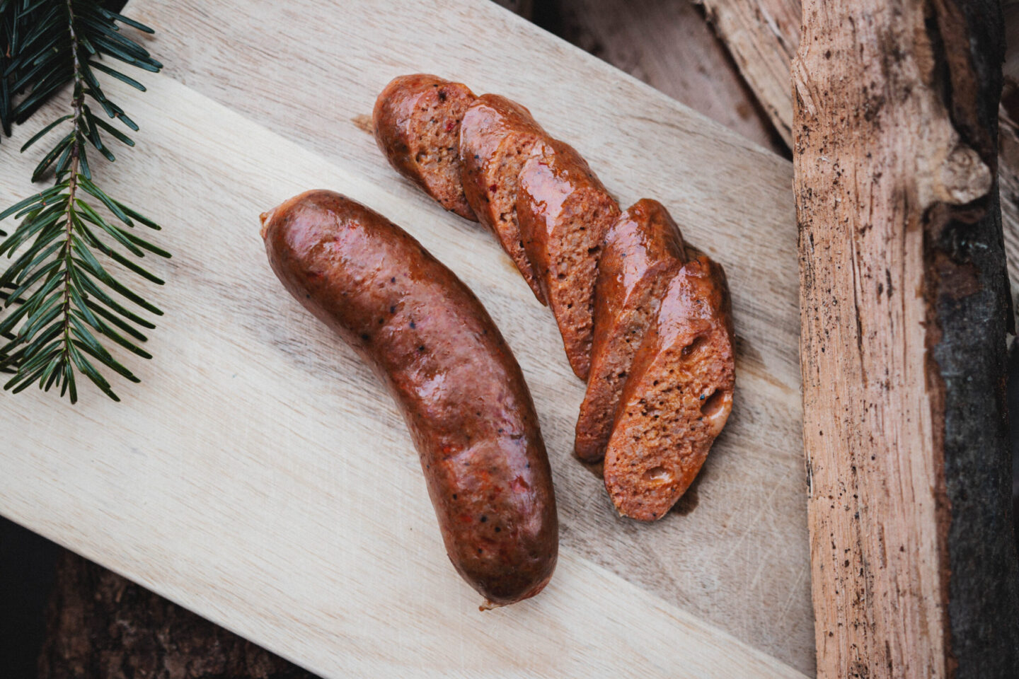 Vår egna signaturkorv röks på låg temperatur i vår offset smoker.